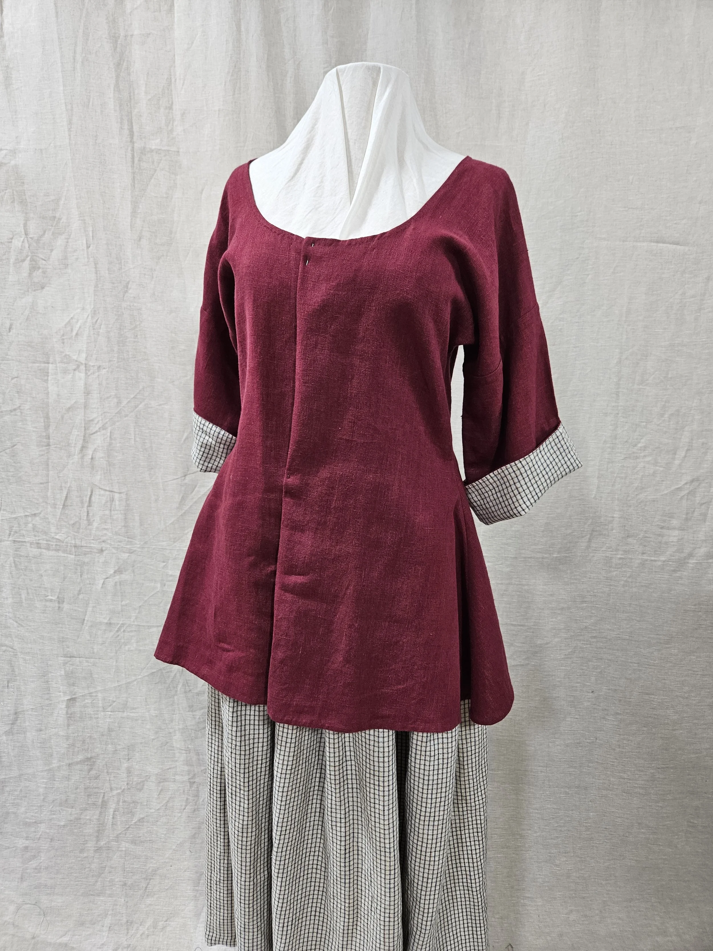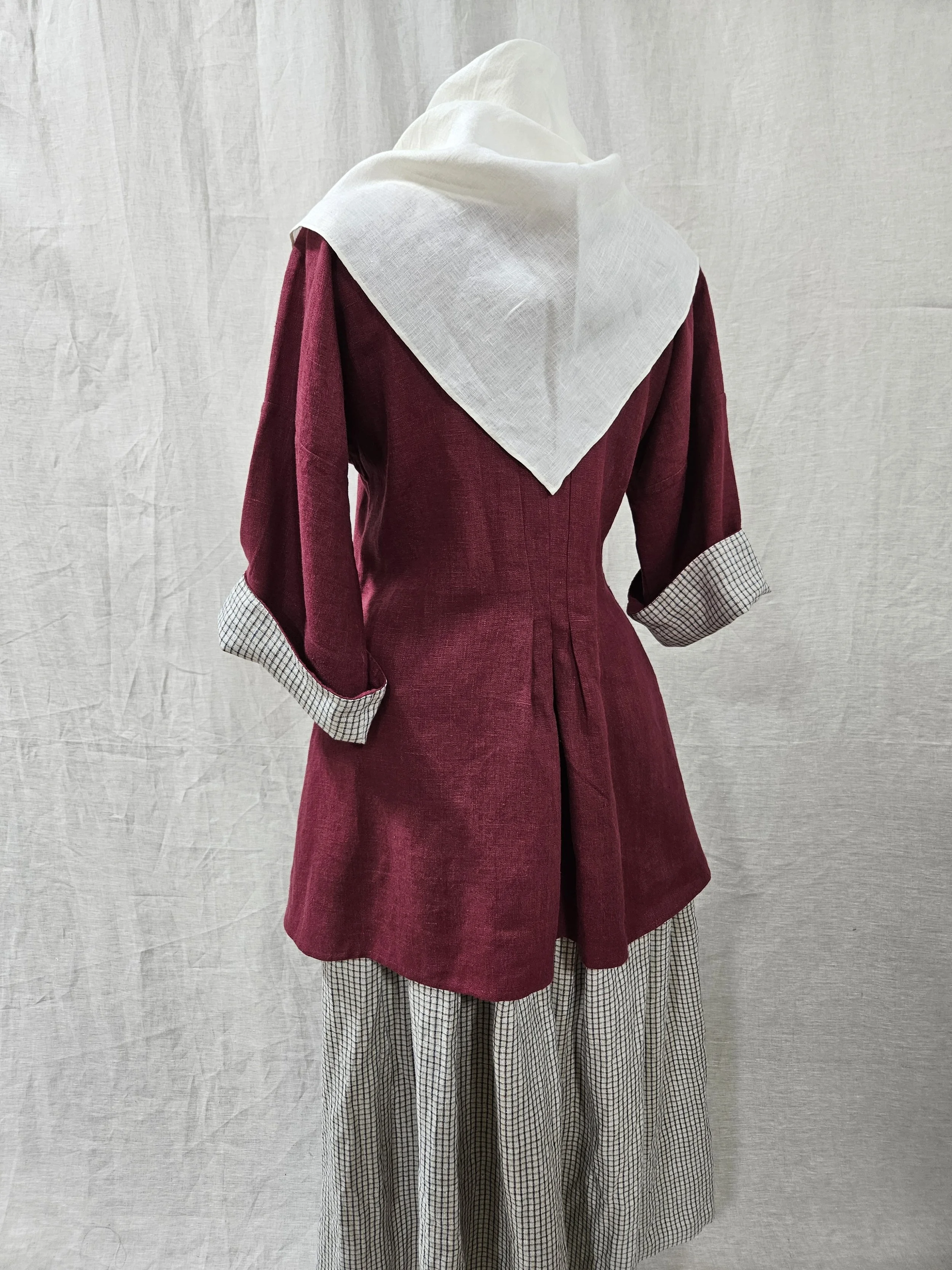 Have three tapering pleats at the back, creating a fitted, conical shape (Colonial era) or gathered drawstring at the neckline and on an interior drawstring across the shoulder blade area (Federal/Transitional era).