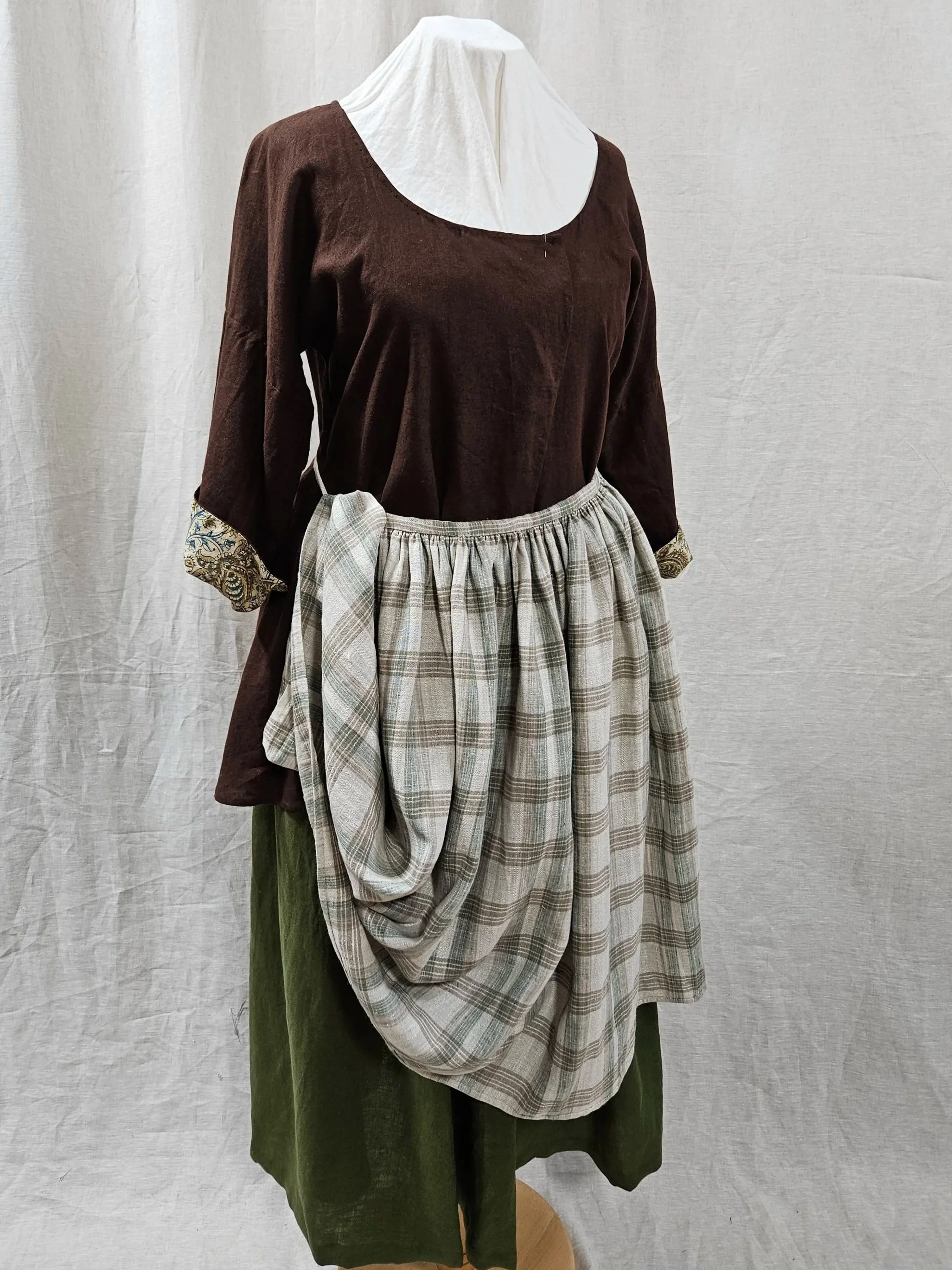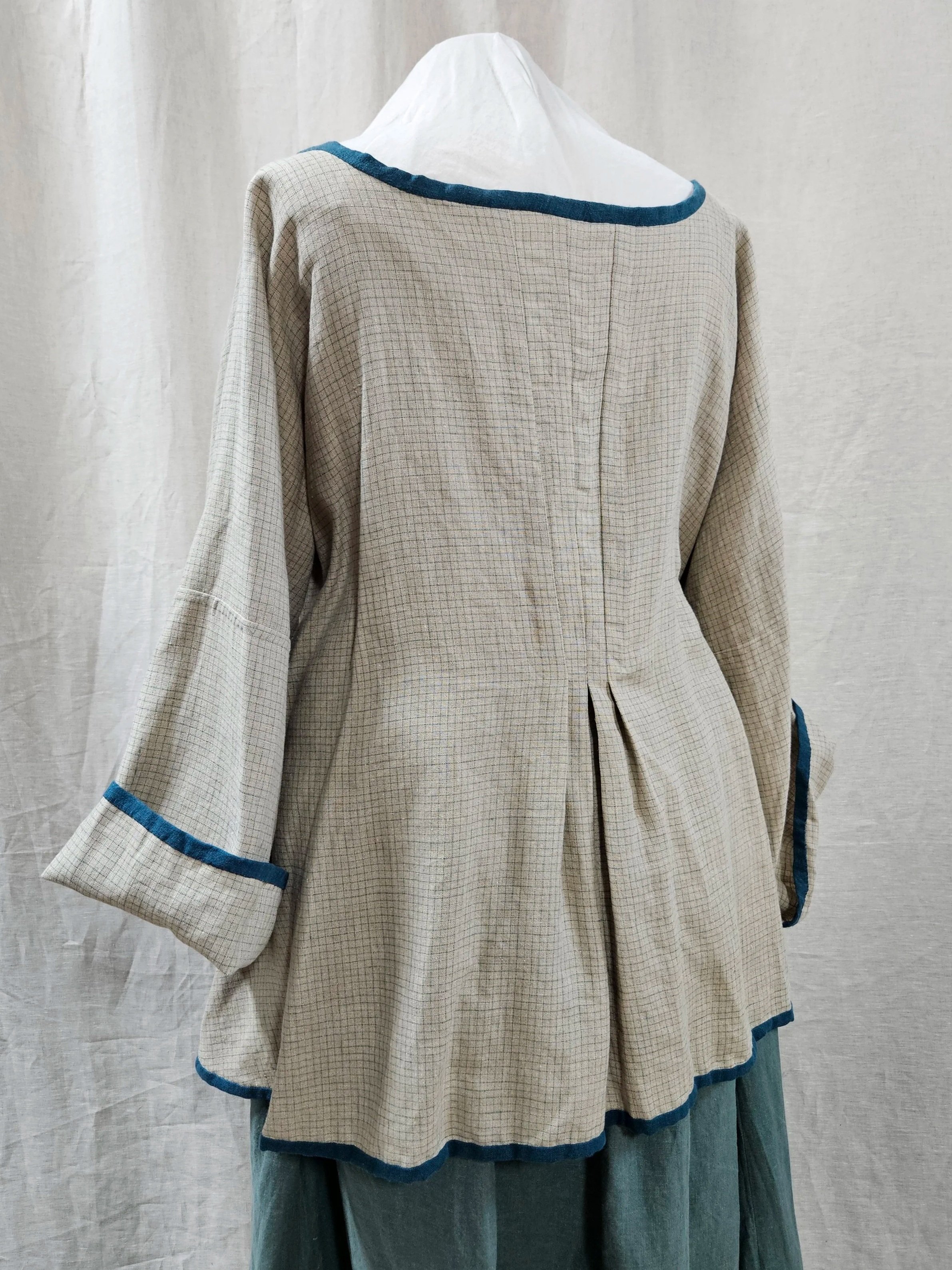 Have three tapering pleats at the back, creating a fitted, conical shape (Colonial era) or gathered drawstring at the neckline and on an interior drawstring across the shoulder blade area (Federal/Transitional era).