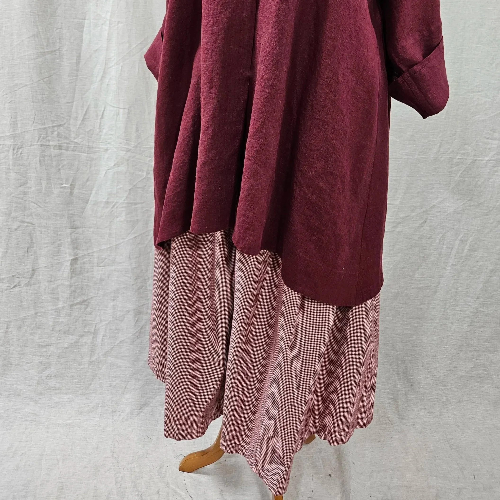 Feature fixed, pleated waistbands with long twill tape ties (neither gathered nor on a drawstring).