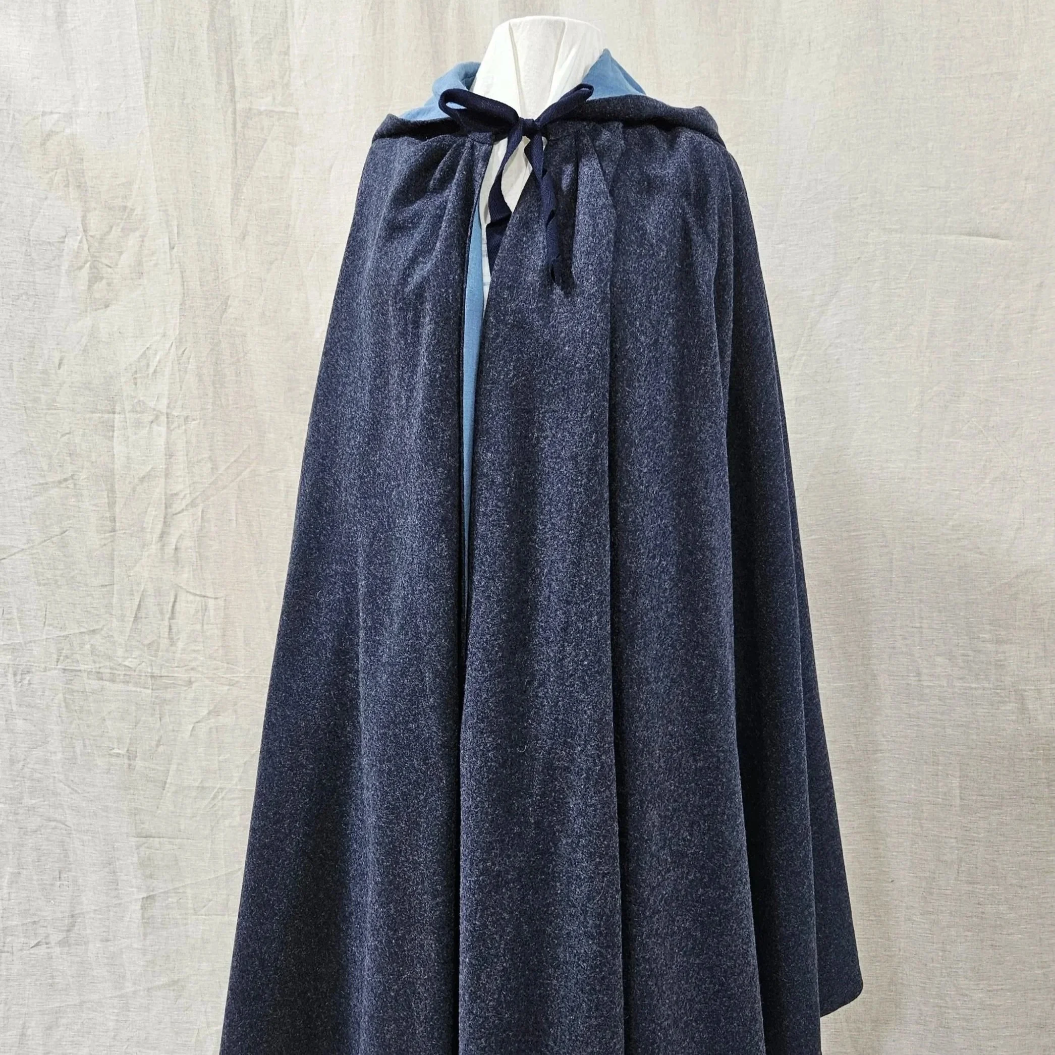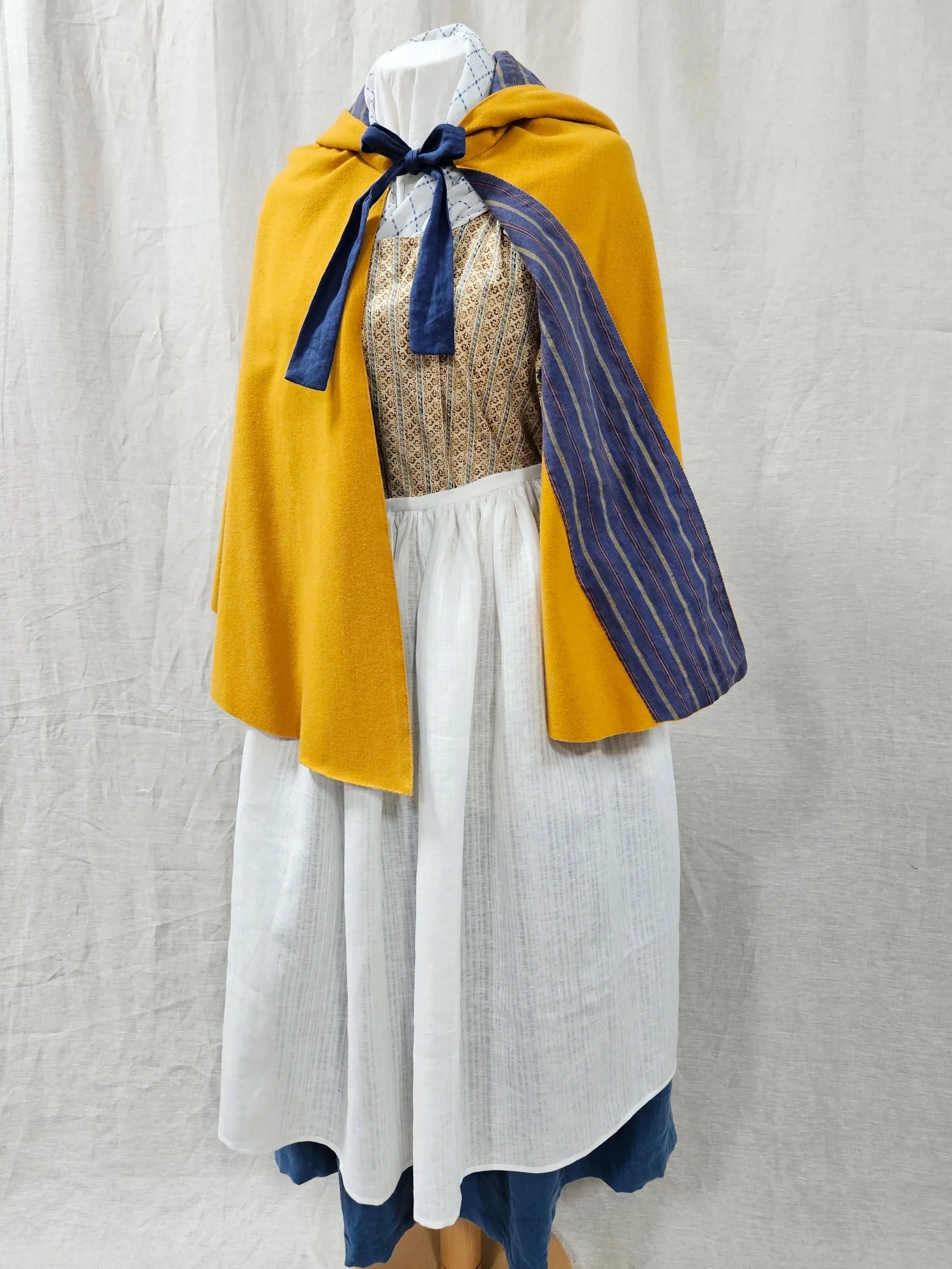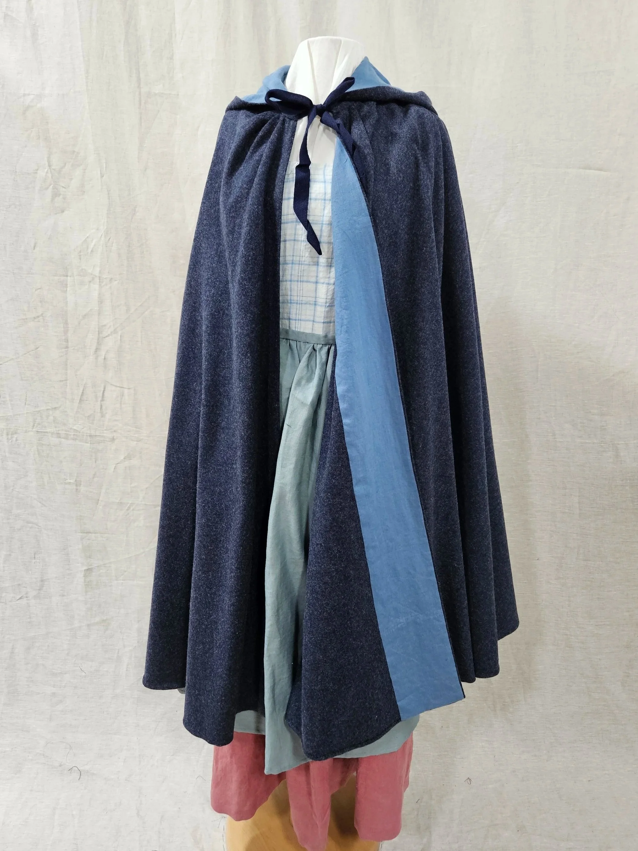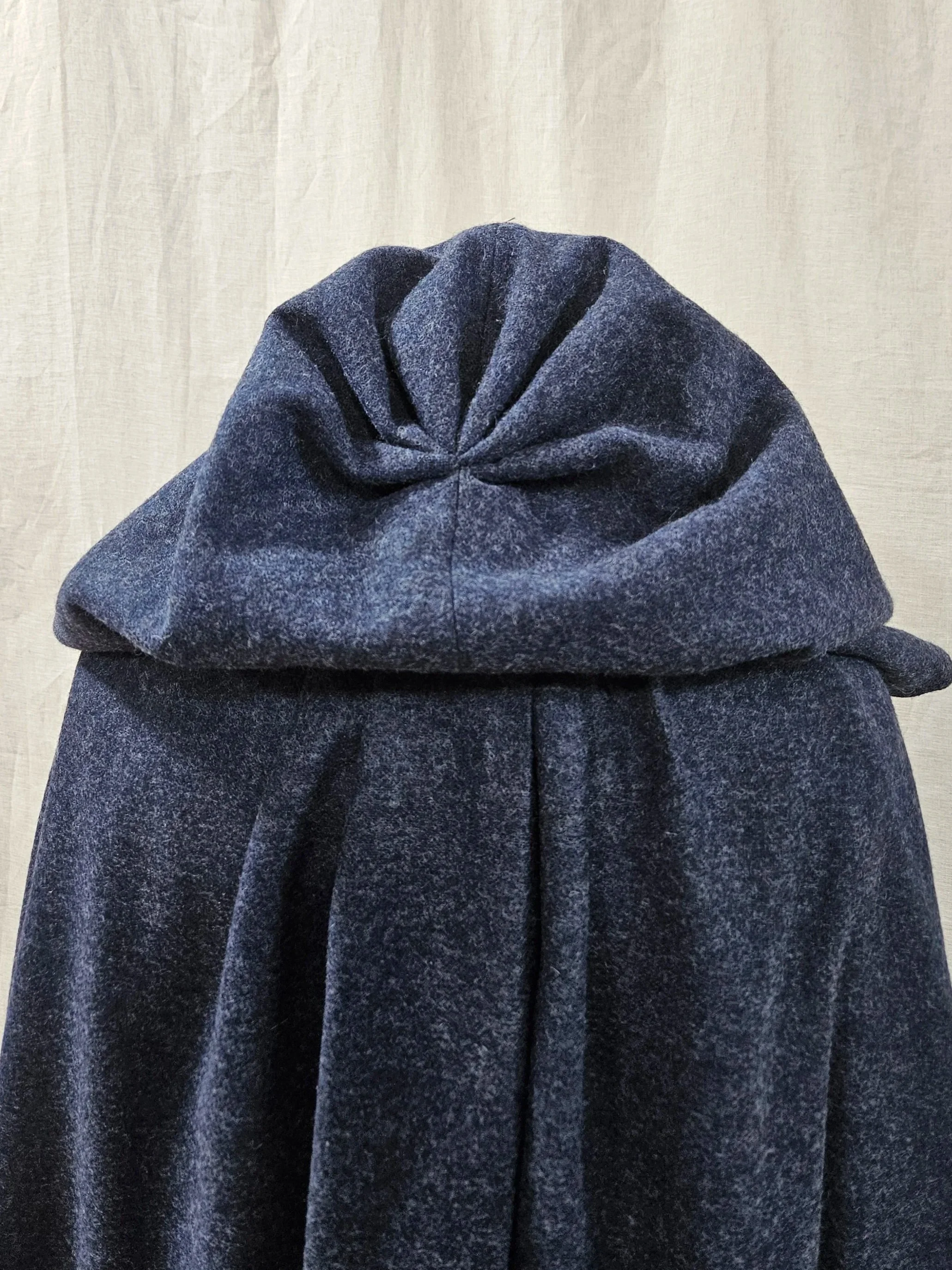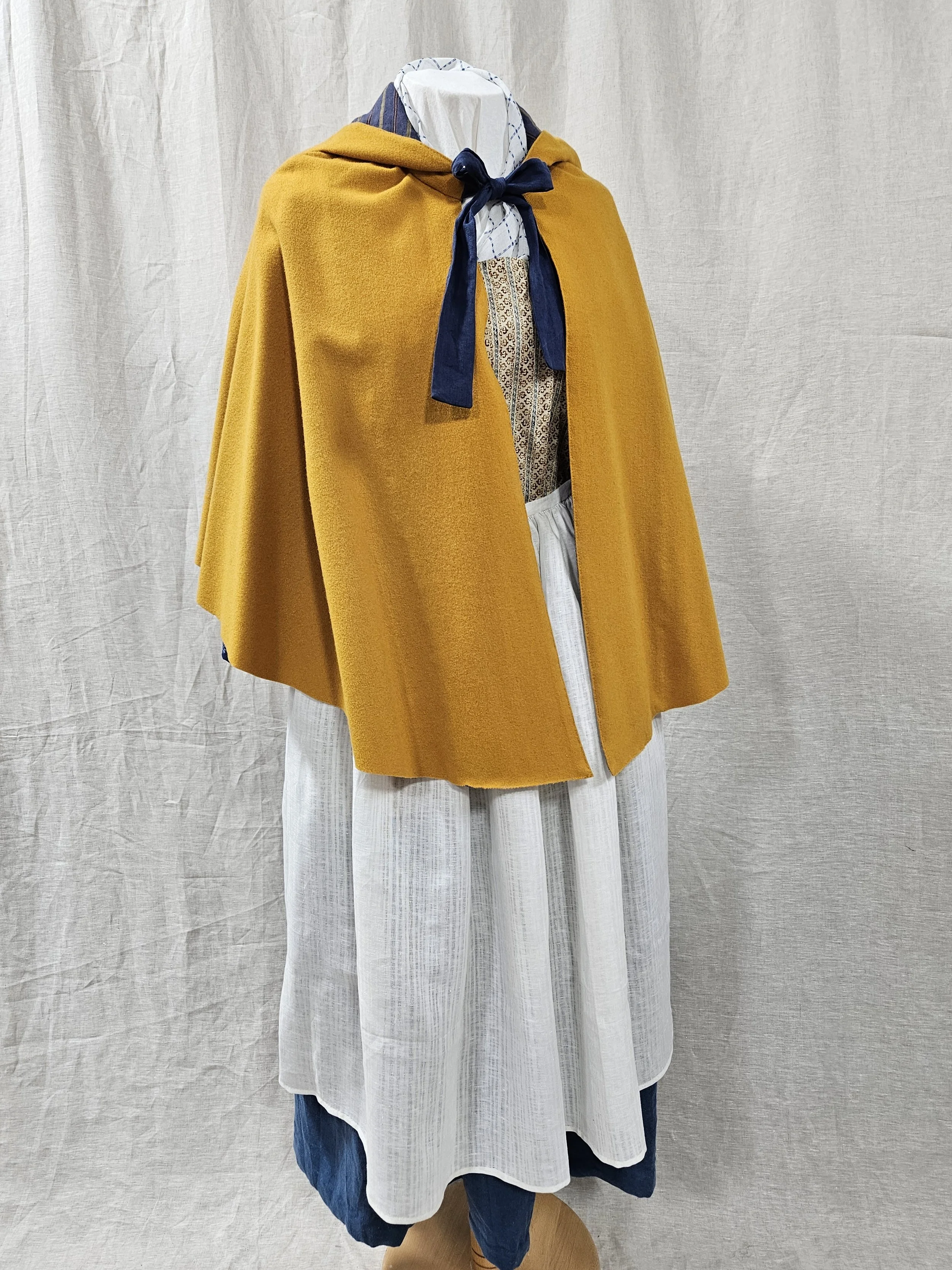 This hooded Short cloak has a 100% wool outer fabric, and 100% linen facing